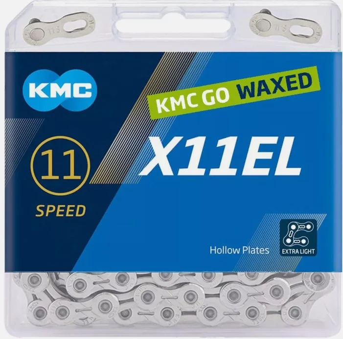 KMC Łańcuch X11 EL 118 ogniw srebrny BOX WOSK + złączka