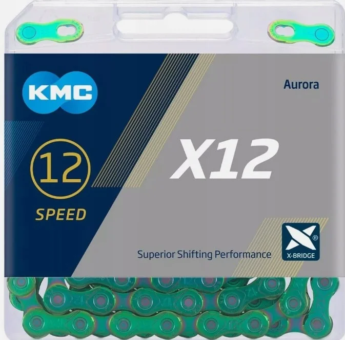 KMC Łańcuch X12 126 ogniw Aurora Zielony BOX+ złączka