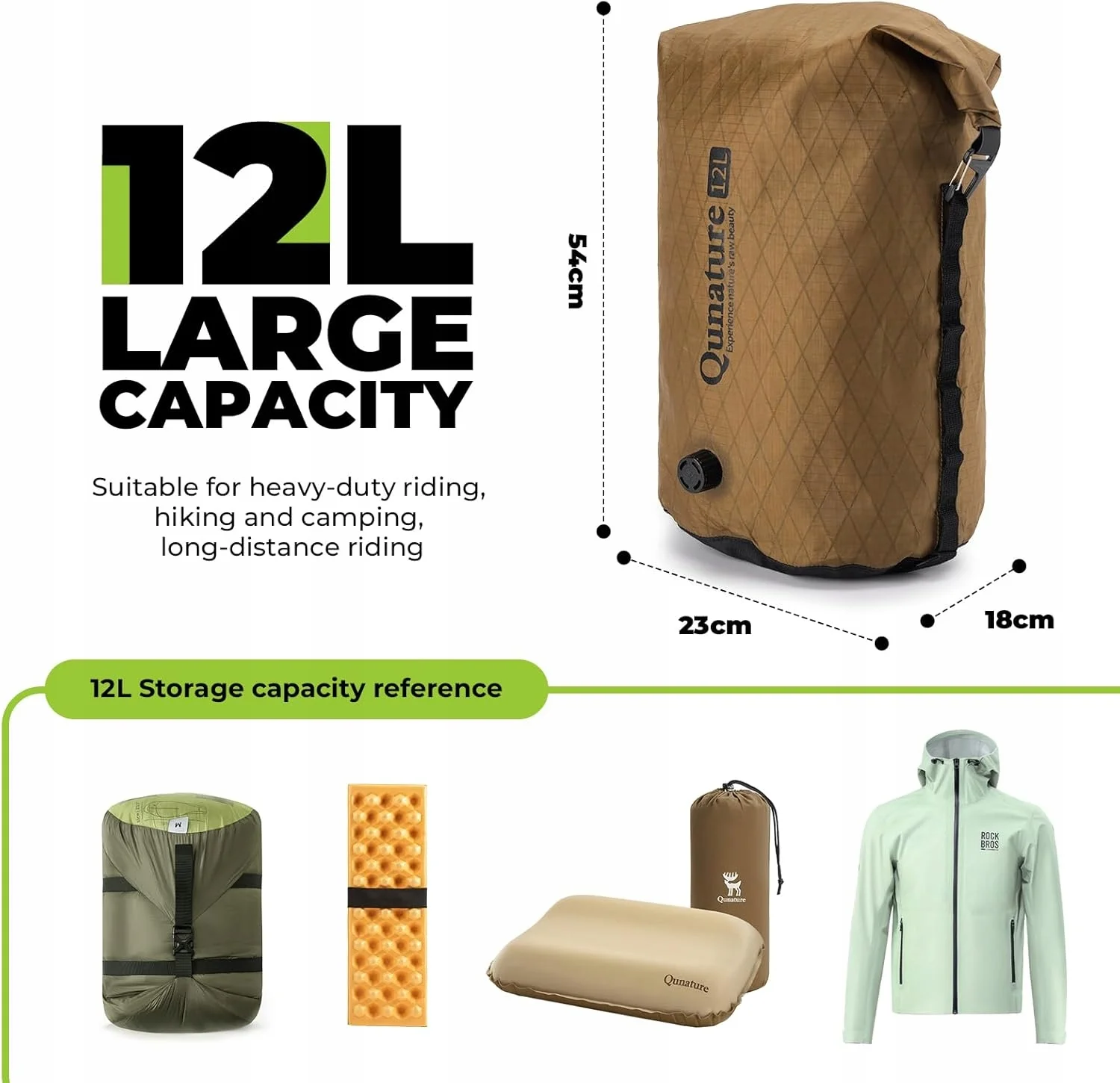 - Wszechstronne zastosowanie: idealnie nadaje się do jazdy na rowerze, wędrówek, pływania kajakiem, na kemping, zapewnia niezawodną ochronę wyposażenia podczas każdej przygody na świeżym powietrzu