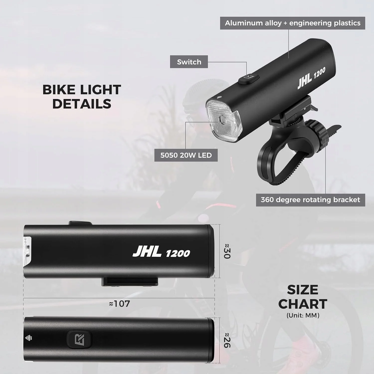 WYGODNE I NIEZAWODNE DETALE: Blokada zapobiegająca przypadkowemu włączeniu. Uchwyt klipsowy umożliwia szybki montaż bez użycia narzędzi i pasuje do okrągłych oraz aerodynamicznych kierownic. Wodoodporność IPX6 — odporna na ulewny deszcz (uwaga: nie zanurzać; dokręcić tylną uszczelkę, aby zapobiec dostawaniu się kurzu).