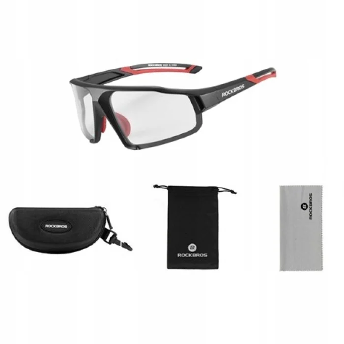 Uniwersalne okulary sportowe marki Rockbros, które świetnie sprawdzą się zarówno do jazdy na rowerze, biegania i innych aktywności sportowych. Dzięki zastosowaniu soczewek fotochromowych, które przyciemniają się automatycznie w zależności od oświetlenia świetnie sprawdzą w zmiennych warunkach.