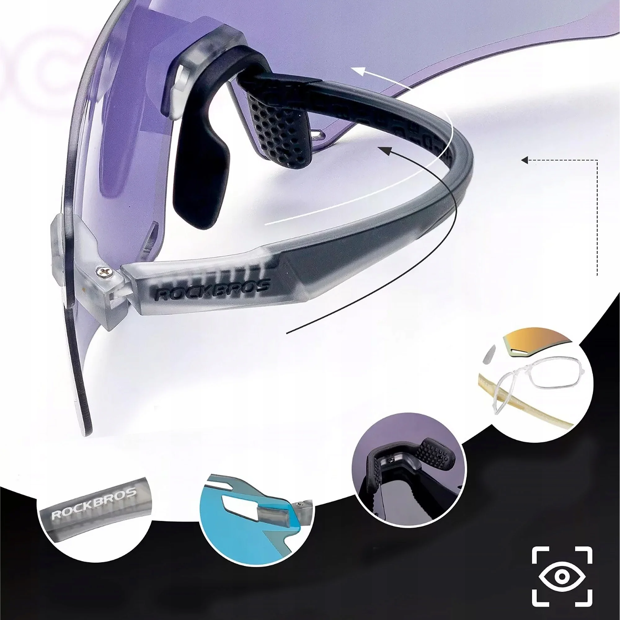 Okulary sportowe przeciwsłoneczne ROCKBROS Ciemnoszare FIOLETOWE SZKŁA