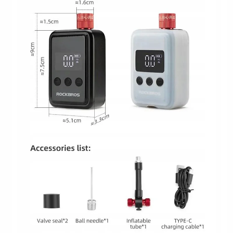 Pompka elektryczna do roweru, piłek, balonów z cyfrowym wyświetlaczem ROCKBROS (42720016001)