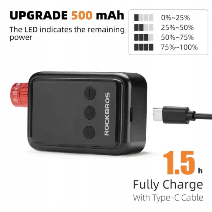 Mini pompka elektryczna RockBros to idealne rozwiązanie dla każdego rowerzysty, który ceni sobie kompaktowe rozmiary, wydajność oraz precyzję. Dzięki czytelnemu wyświetlaczowi LED, automatycznemu wyłączaniu i możliwości ustawienia docelowego ciśnienia, pompowanie opon staje się szybkie i wygodne.