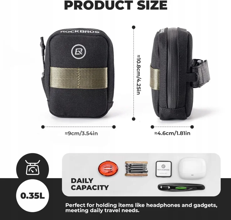 Ta mała, praktyczna i stylowa torba rowerowa idealnie nadaje się do przechowywania drobnych przedmiotów codziennego użytku podczas jazdy na rowerze, nie rezygnując z elastyczności i komfortu jazdy. Dostępna jest w kilku kolorach, aby dopasować się do różnych preferencji.