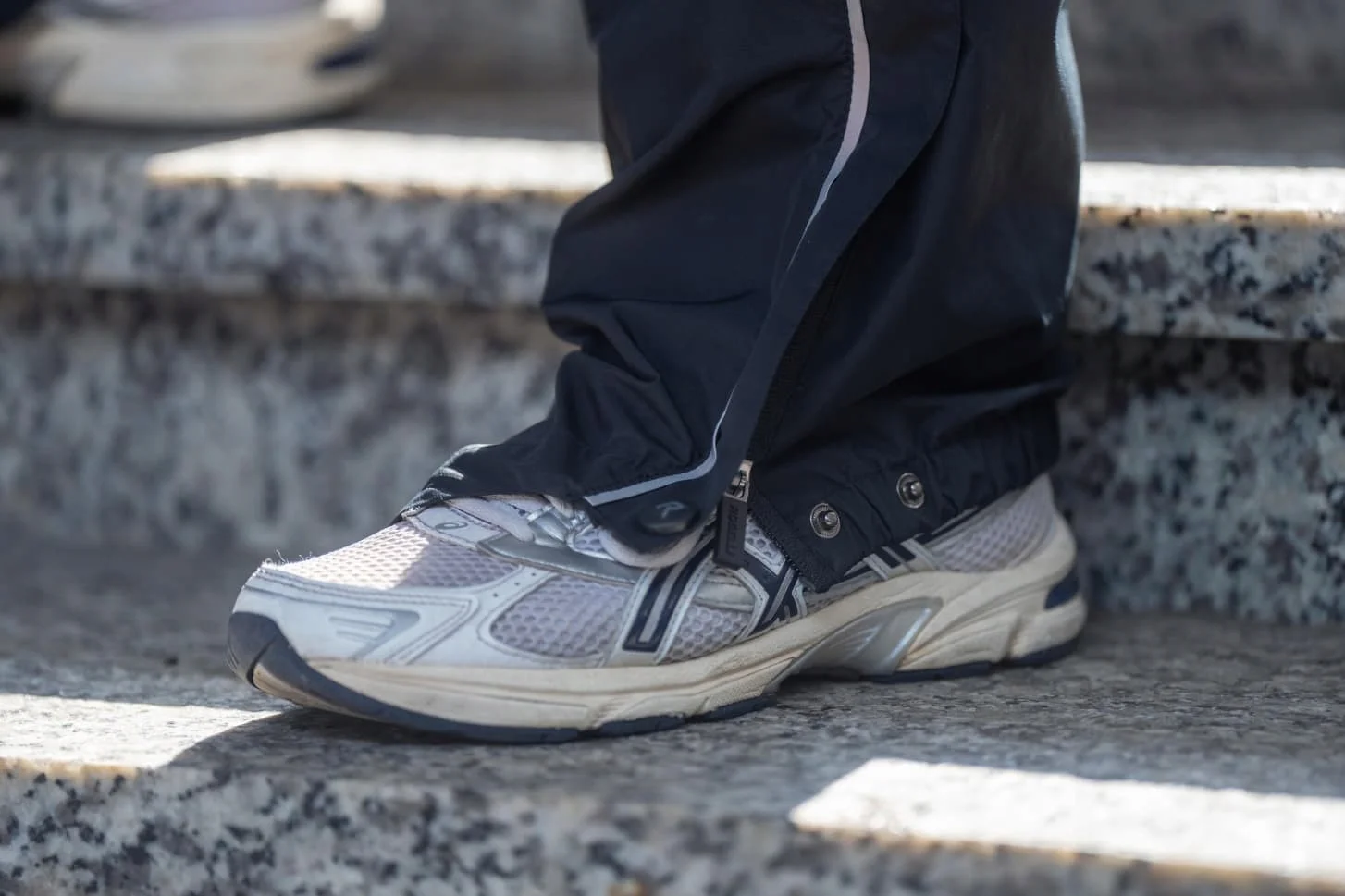 Ochraniacz na buty utrzymuje je suche również podczas deszczu. Zabezpieczony zamek błyskawiczny ułatwia zakładanie i zdejmowanie, a zatrzaski umożliwiają regulację rozmiaru dla dodatkowej ochrony.