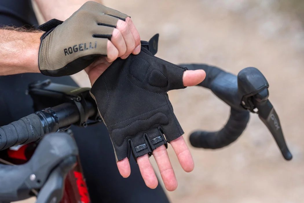 Dłoń ma miękką wyściółkę zamszową z lekkimi wstawkami żelowymi, które pochłaniają wstrząsy i chronią dłonie przed wibracjami powstającymi na drodze. Zapewnia to wygodny chwyt i zmniejsza zmęczenie dłoni.