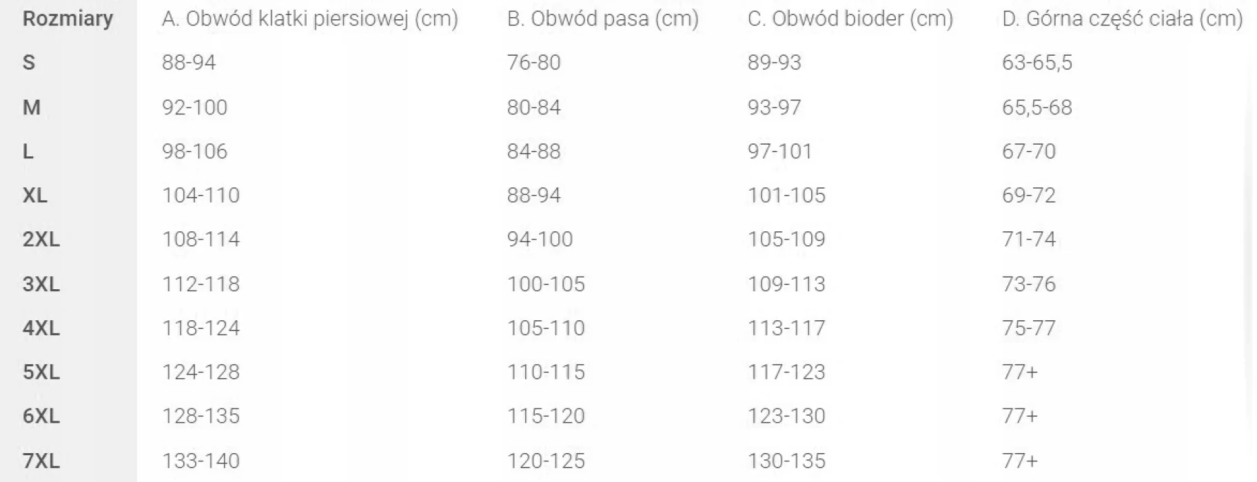 Zobacz tabelę rozmiarów
