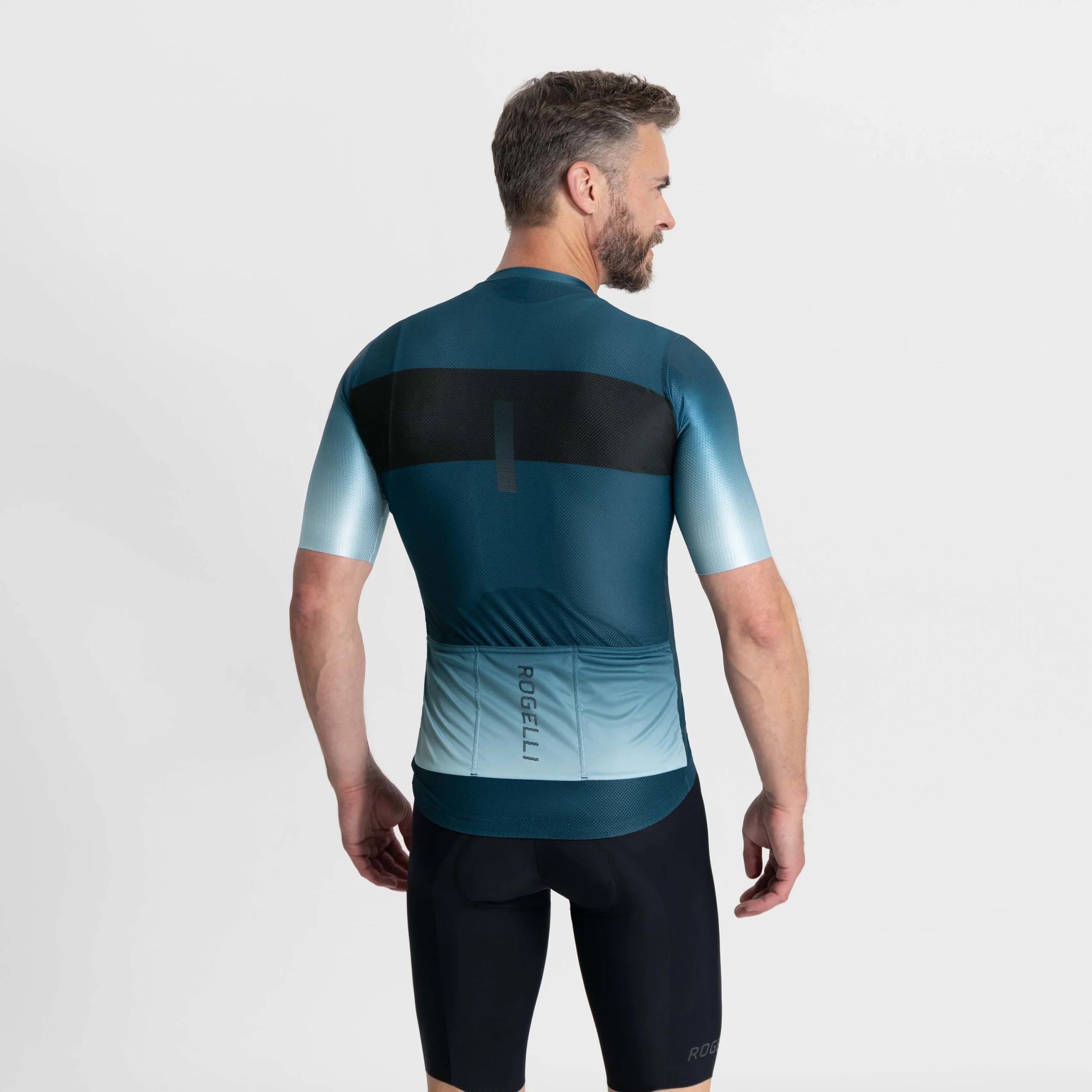 Siateczkowy materiał Sitip® Leader Mesh z tyłu koszulki zapewnia optymalną wentylację, a lekkie, tylne kieszenie z eleganckim logo Rogelli dodają stylu.
