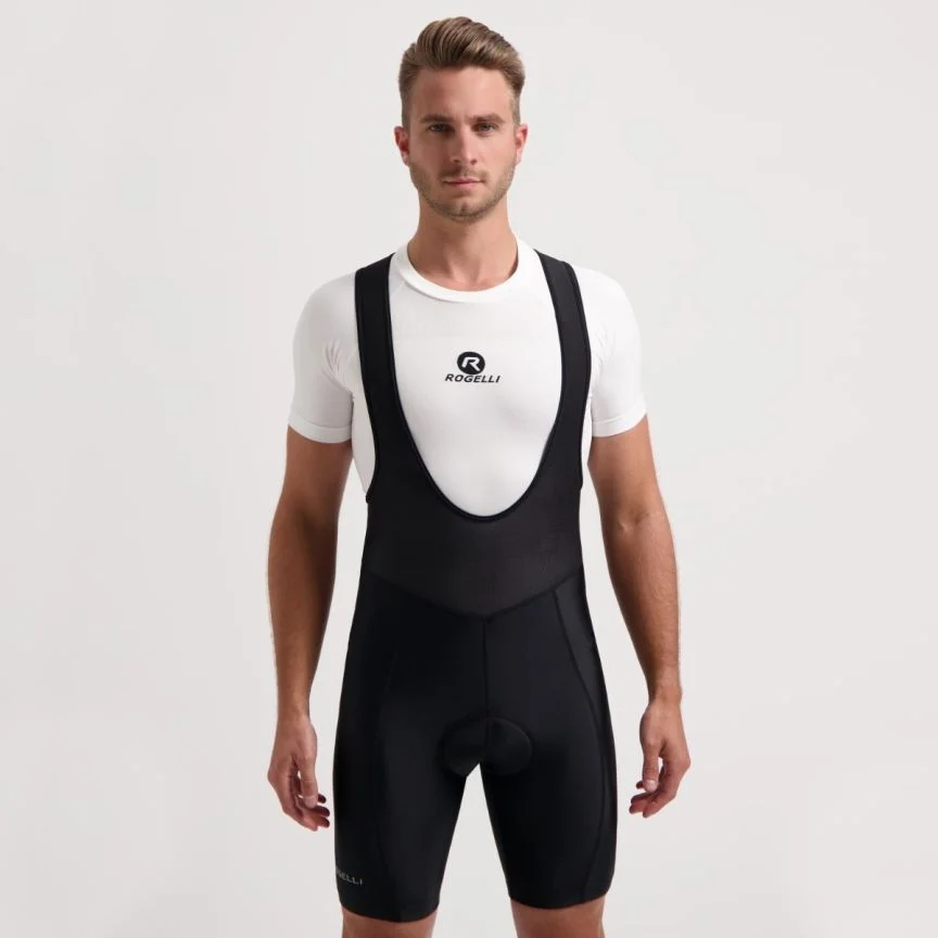 Męskie, podstawowe spodenki rowerowe z szelkami Econ z linii Rogelli RACE FIT wykonane zostały z bardzo lekkiego, a zarazem wytrzymałego materiału typu Dynaflex. Spodenki wyposażone zostały we wkładkę typu Basic - gwarantującą podstawową ochronę podczas jazdy.