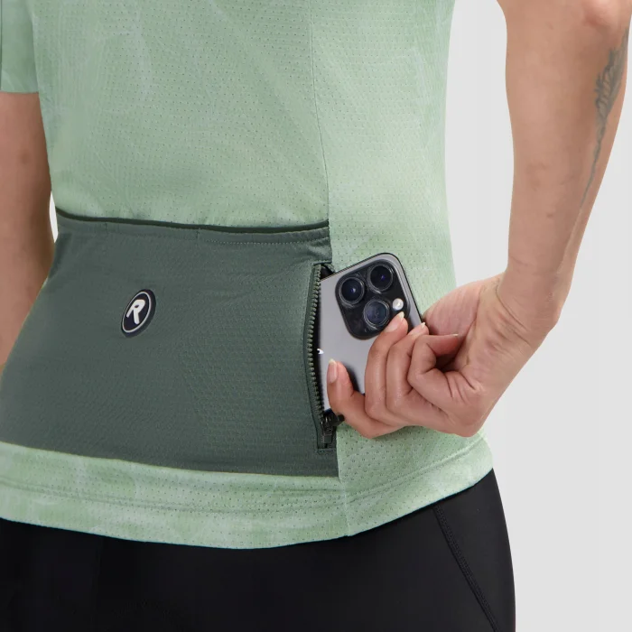 Dzięki trzem tylnym kieszeniom i dodatkowej tylnej kieszeni zapinanej na suwak będziesz mieć dużo miejsca, aby bezpiecznie przenosić wszystkie swoje najpotrzebniejsze rzeczy. Silikonowy ściągacz w pasie zapobiega podwijaniu się koszulki rowerowej, dzięki czemu możesz w pełni skupić się na drodze i otaczającej Cię przyrodzie.