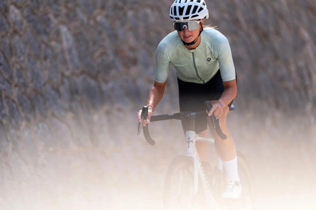 Koszulka rowerowa ma krój Race, który dopasowuje się do ciała, zapewniając jednocześnie wystarczającą swobodę ruchów. Materiał Eco Airlite Swift, z którego wykonano koszulkę, jest lekki, przewiewny i oddychający, dzięki czemu zapewnia optymalną temperaturę ciała podczas jazdy na rowerze.