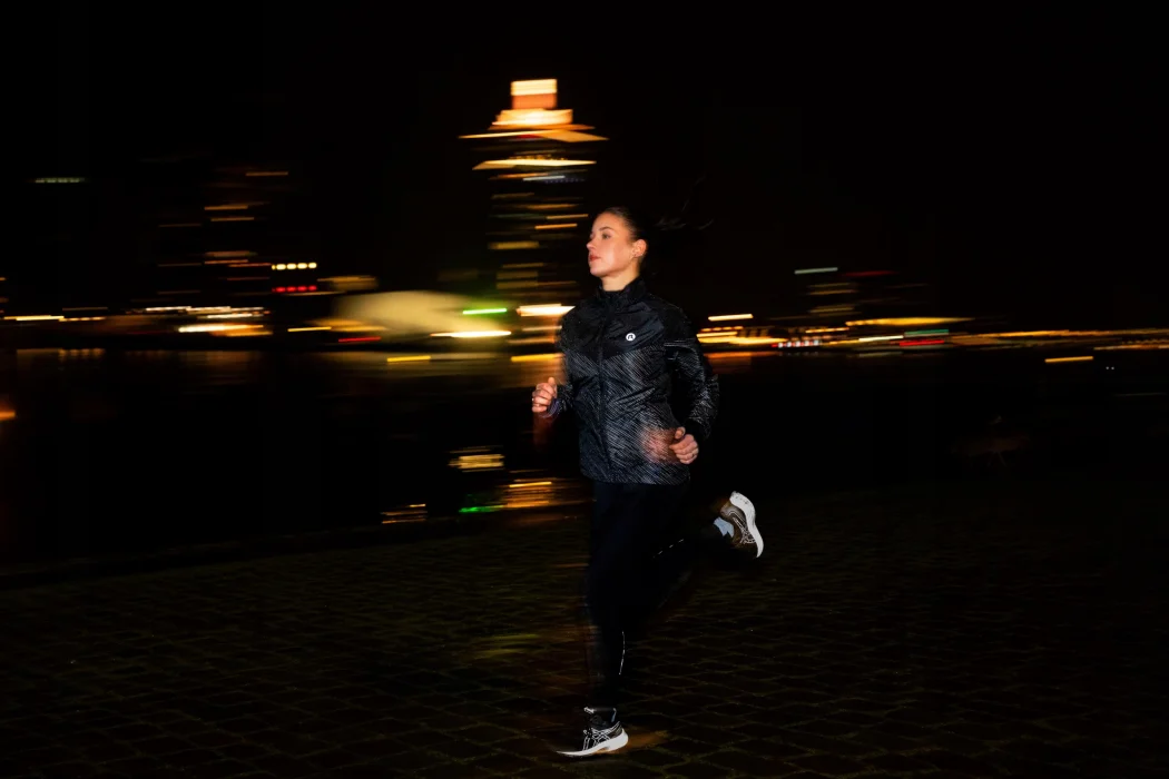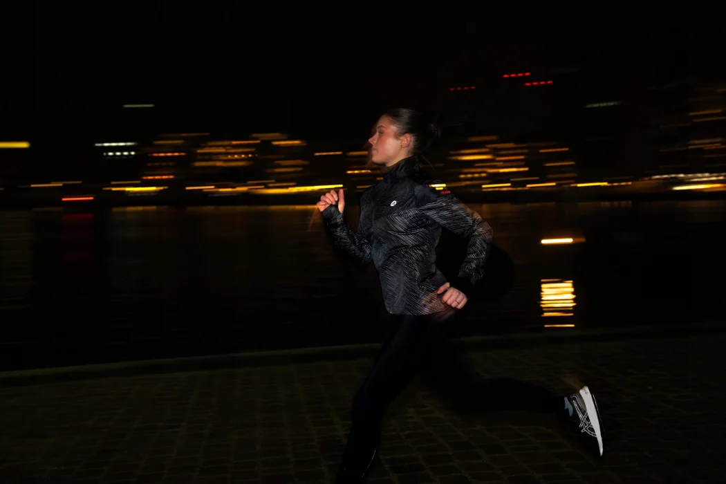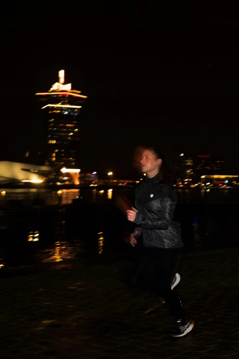 Całościowy odblaskowy nadruk zapewnia widoczność z każdej strony, dzięki czemu jesteś bardziej widoczna w warunkach słabego oświetlenia lub złej pogody.
