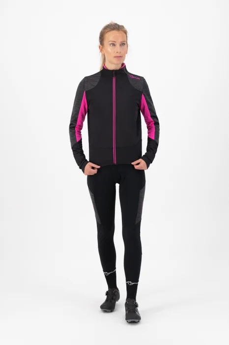 Bezszwowa konstrukcja spodni Rogelli Glory dodatkowo zwiększa komfort użytkowania. Materiał Dynatherm Flex zapewnia doskonały komfort termiczny oraz wysoką oddychalność, a zarazem optymalną wentylację. Elastyczny materiał rozciągliwy jest w 4 kierunkach zapewniając doskonałą swobodę ruchów podczas rowerowych wycieczek. Dzięki zamkowi błyskawicznemu u dołu nogawek, spodnie są łatwe do zakładania i zdejmowania. Elastyczne nogawki z silikonowymi paskami zapewniają, że spodnie zawsze pozostają na swoim miejscu podczas jazdy na rowerze. Spodnie Rogelli Glory wykończone zostały stylowymi różowymi detalami, dzięki czemu idealnie komponują się z zimową kurtką Rogelli z serii Glory.