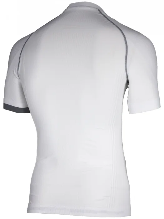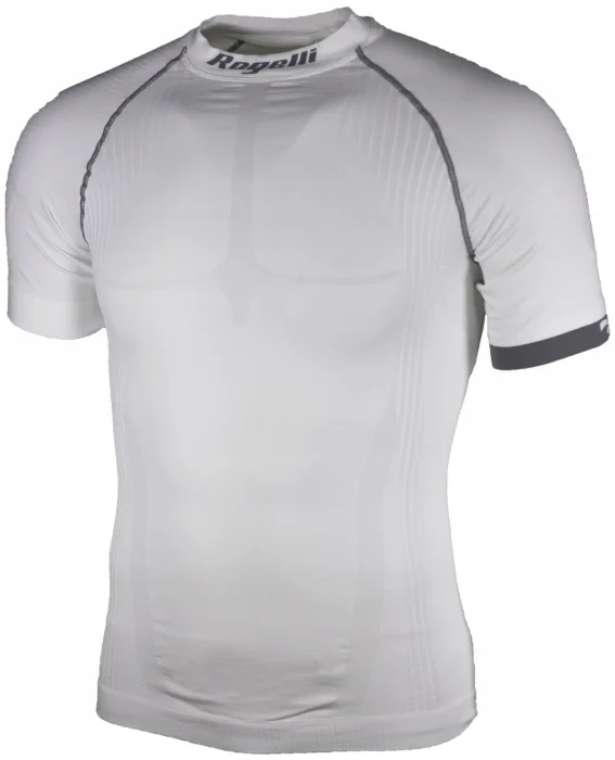 Biała koszulka / bielizna z krótkim rękawem z linii Race Fit wykonana z przyjemnego, funkcjonalnego materiału Dryarn, który świetnie sprawdza się zarówno podczas uprawiania sportu, jak i podczas codziennego noszenia. Wysoka elastyczność materiału oraz technologia tkania i krój zapewniają komfort noszenia i swobodę ruchów. Technologia produkcji włókien Dryarn gwarantuje funkcjonalność materiału nawet po 100-krotnym praniu. Włókna Dryarn regulują ponadto florę bakteryjną na powierzchni skóry, ograniczają namnażanie się bakterii przy wzmożonym wysiłku fizycznym i chronią przed reakcją alergiczną oraz otarciem skóry. Delikatna, oddychająca struktura tkaniny wspomaga odprowadzanie potu na zewnątrz. Brzegi rękawów oraz dół koszulki luźno zakończone. Pod szyją przylegający kołnierzyk. Logo Rogelli w kolorze szarym znajduje się z przodu koszulki.