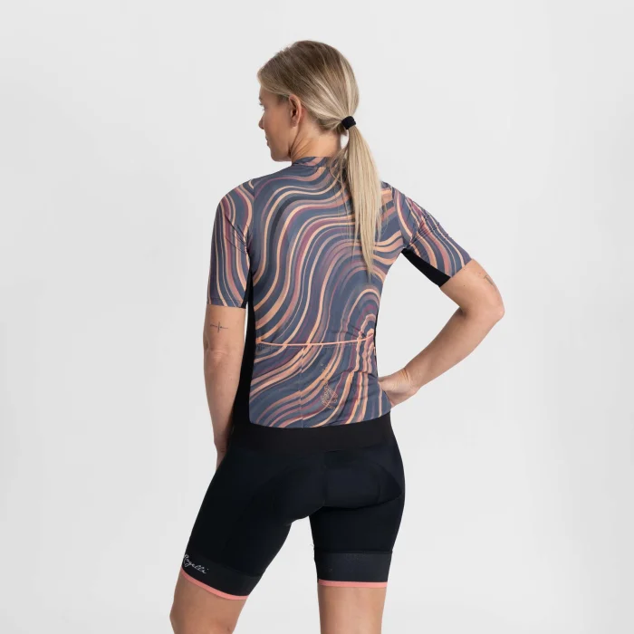 Modny design koszulki Lynn inspirowany jest falami morza. Faliste linie w połączeniu z czarnymi panelami bocznymi podkreślają kontury kobiecego ciała, zapewniając stylowy wygląd.