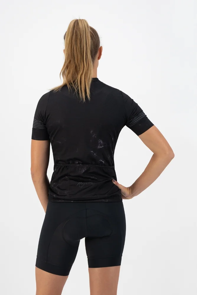 Subtelny, marmurkowy nadruk nadaje damskiej koszulce rowerowej Rogelli Marble stylowy i luksusowy wygląd. Kolorowe akcenty i materiał sprawiają, że Marble jest idealną, letnią koszulą. Tkanina Sensor jest wyjątkowo przewiewna dzięki mini-owalnej strukturze. Szybkoschnący materiał optymalnie odprowadza pot, dzięki czemu możesz cieszyć się pokonywanym dystansem nie tylko stylowo, ale i beztrosko w nawet najgorętsze dni. Dzięki krojowi typu Race Fit koszulka z nowej letniej kolekcji Rogelli ładnie się układa.