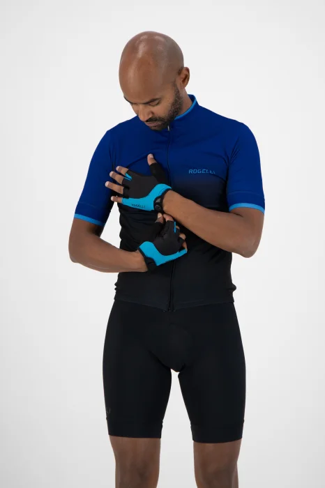Męskie rękawiczki rowerowe uszyte z materiałów typu Airflow i Dynaflex. Chłonne frotte na grzbiecie kciuka ułatwia ocieranie potu podczas jazdy. Dłoń skrywa żelową wkładkę, która wspomaga mocny chwyt. Grzbiet rękawiczki ozdobiony logo Rogelli. Zapięcie na rzep. System pull on/off wspomagający zakładanie i zdejmowanie rękawiczek.