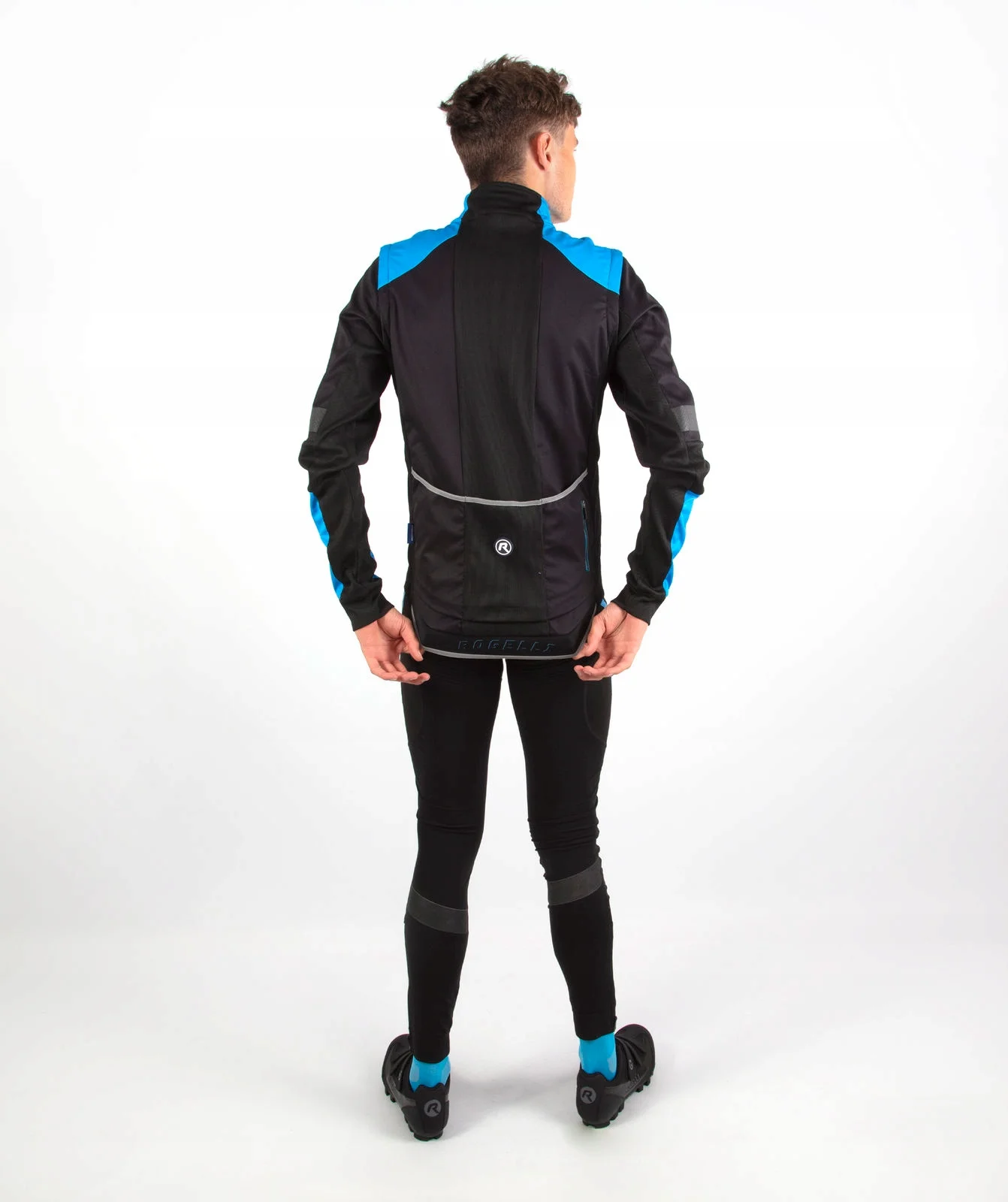 • odblaskowe logo na udach i szerokie, odblaskowe pasy na łydkach