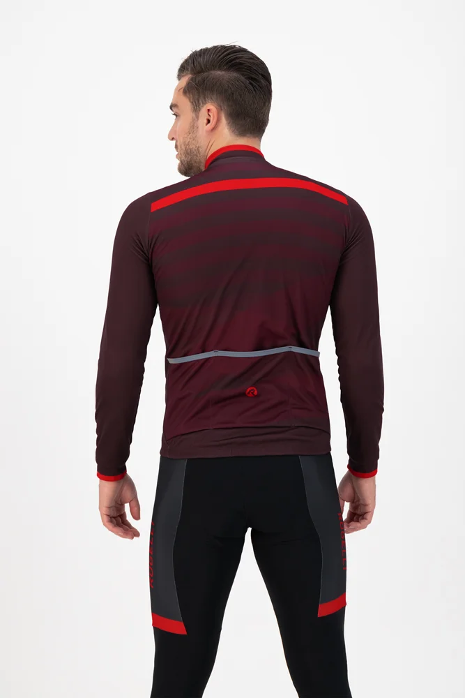 Końce rękawów wykończone zostały szerokim dopasowującymi się do kształtu nadgarstków szerokimi i elastycznymi mankietami. Dół bluzy wyposażony został w gumkę i silikonową obwódkę, która utrzymuje bluzę w należytej pozycji nawet podczas najbardziej intensywnych treningów. Odblaskowe elementy bluzy Rogelli Stripe poprawiają bezpieczeństwo podczas wieczornych przejażdżek.