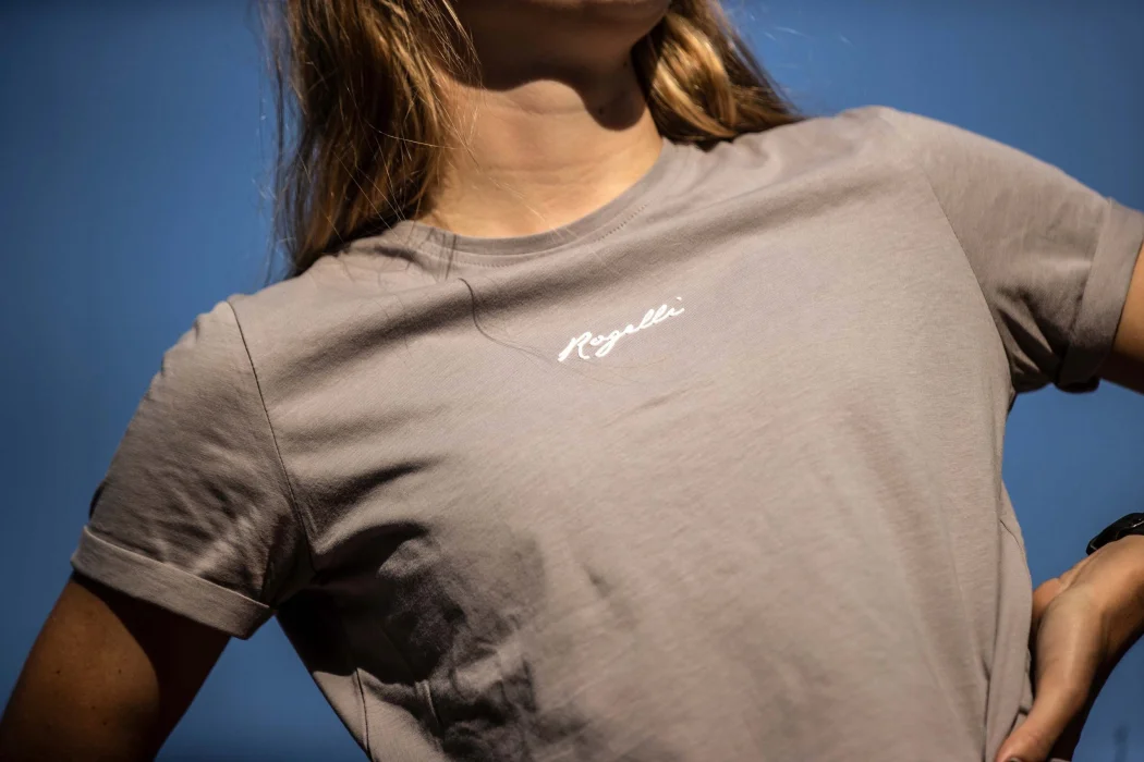 Damska koszulka z krótkim rękawem z kolekcji Rogelli Enjoy Life. T-shirt wykonany jest w 100% z bawełny i posiada na piersi silikonowy nadruk marki z efektem 3D. Dodatkowo koszulka wykończona jest podwiniętymi rękawami. T-shirt ma okrągły dekolt i dopasowany krój.
