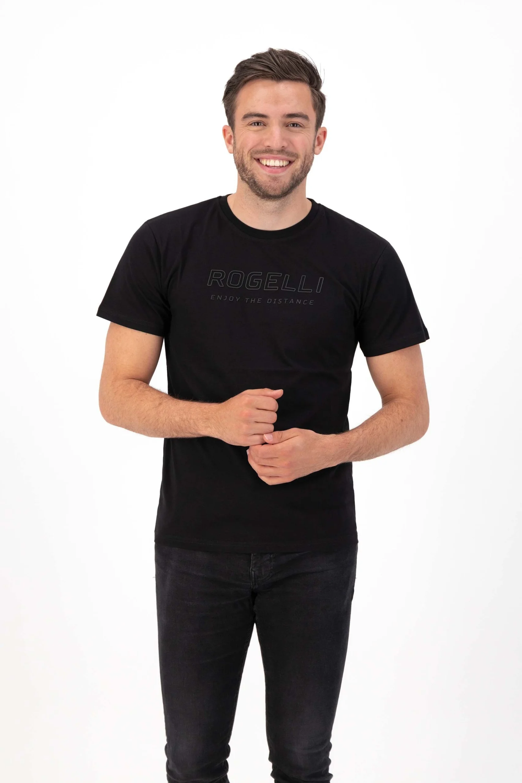 Koszulka Rogelli Enjoy Life wykonana jest w 100% z bawełny i posiada silikonowy nadruk marki na piersi z efektem 3D. Dodatkowo koszulka zakończona jest podwiniętymi rękawami. T-shirt ma okrągły dekolt i dopasowany krój.