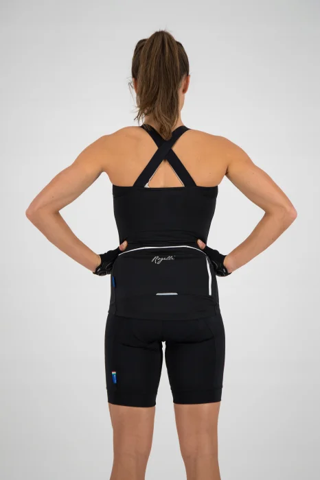 Lubisz gorące słońce kiedy jeździsz na rowerze? Definitywnie top Twist jest dla ciebie. Krój typu Race, elastyczny materiał Dynaflex oraz skrzyżowane szelki na plecach wszystko to sprawia, że top Twist idealnie nadaje się na gorące letnie dni lub zimowe sesje Indor biking. Top Twist utrzymuje się na miejscu dzięki długiemu zamkowi z auto blokadą oraz silikonowemu nadrukowi na spodniej części pasa. Twoje klucze lub telefon będą bezpieczne w zapinanej na zamek kieszonce.