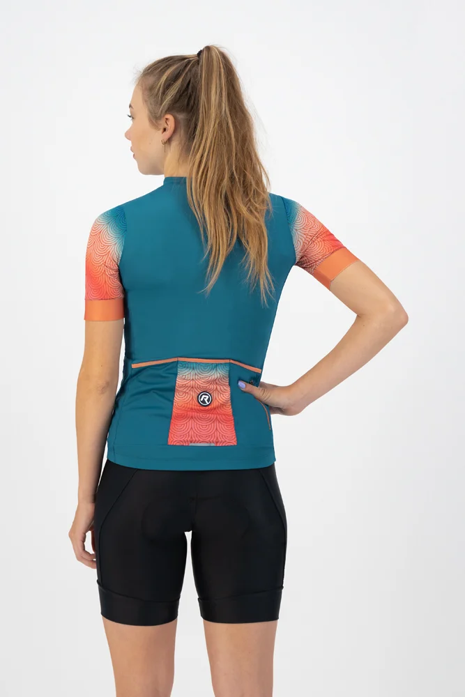 Koszulka kolarska jest wyposażona w różne funkcjonalne detale, takie jak długi zamek błyskawiczny z blokadą, trzy tylne kieszenie, dodatkowa tylna kieszeń z zamkiem błyskawicznym i elementy odblaskowe dla dodatkowej widoczności. Dzięki krojowi typu Race Fit i elastycznym mankietom na krótkich rękawach Waves ładnie się układa. Silikonowy pasek na rękawach i w pasie zapewnia, że ​​koszulka  pozostaje na swoim miejscu nawet podczas najbardziej intensywnych treningów.