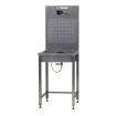 Doskonały dodatek do naszych modułowych stołów warsztatowych - podwieszany zlew serwisowy. Zaprojektowany, aby praca przy widelcach amortyzowanych i amortyzatorach była jak najbardziej wydajna, jest zbudowany w całości ze stali nierdzewnej i wyposażony w wiele funkcji opracowanych przy udziale profesjonalistów serwisowych. Automatyczna regulacja zacisku bezpiecznie przytrzyma element zawieszenia i pozwala ustawić żądaną orientację. Tylny panel jest perforowany, aby pomieścić haczyki w dowolnej konfiguracji do zawieszania części w celu łatwego dostępu i suszenia. Kształt i funkcja zlewozmywaka zostały zoptymalizowane pod kątem łatwego odwadniania dzięki gładkim otworom ociekowym i odpływowi z zaworem do bezpiecznego zbierania zużytego oleju. Wreszcie są regulowane nóżki, które pozwalają wypoziomować zlewozmywak i zapewnić jego prawidłowe działanie przez cały czas.