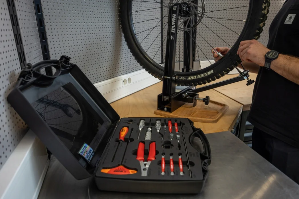 Ten wszechstronny zestaw do budowy kół zawiera wszystkie narzędzia, których profesjonalista lub domowy mechanik może potrzebować do zbudowania koła od komponentów do gotowego elementu i utrzymania kół w linii prostej. Zawiera 19 specyficznych dla kół narzędzi w przyjaznym dla warsztatu pudełku do przechowywania z wstępnie przyciętymi piankowymi wkładkami