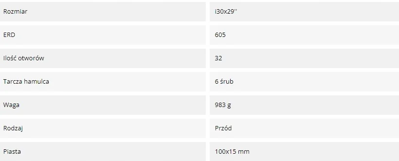 - maksymalne napięcie szprych: 110-120 KgF