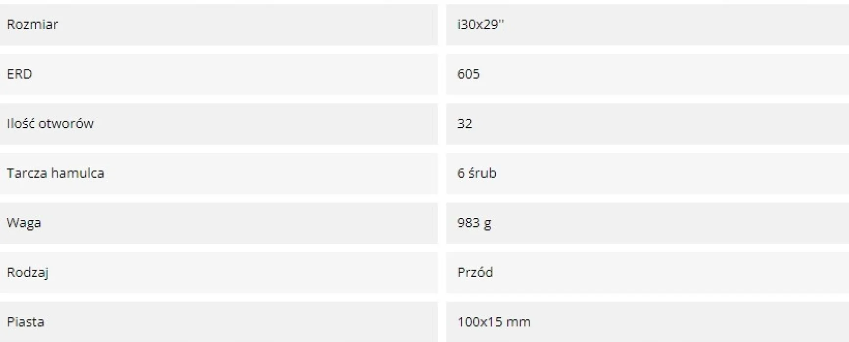- piasta: 100x15 mm