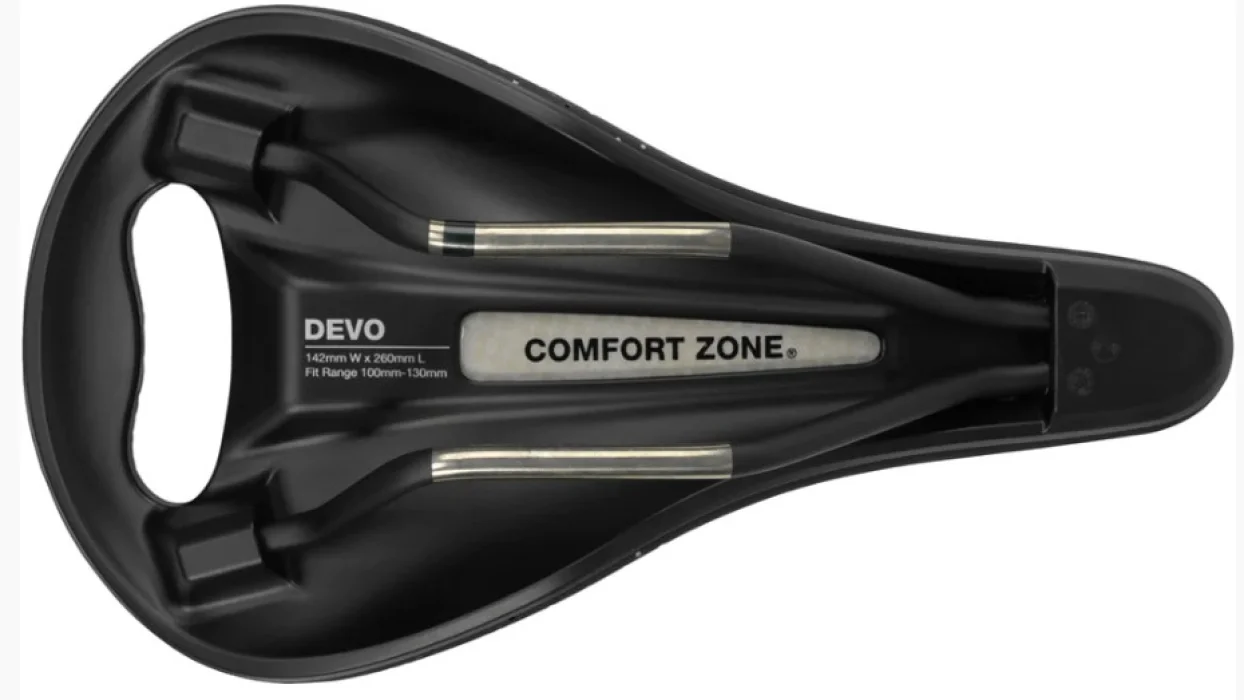Kontur szerokości siodełka Devo stopniowo zwiększa się w przedniej połowie siodełka, po czym szybko się rozszerza, tworząc główny obszar podparcia kości kulszowej. Pozwala to pozostać w pozycji siedzącej i mocno pedałować bez ocierania wewnętrznej strony ud o krawędzie siodełka.