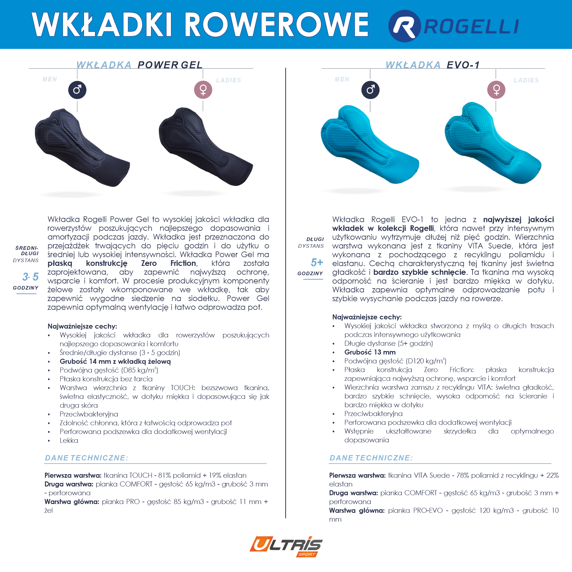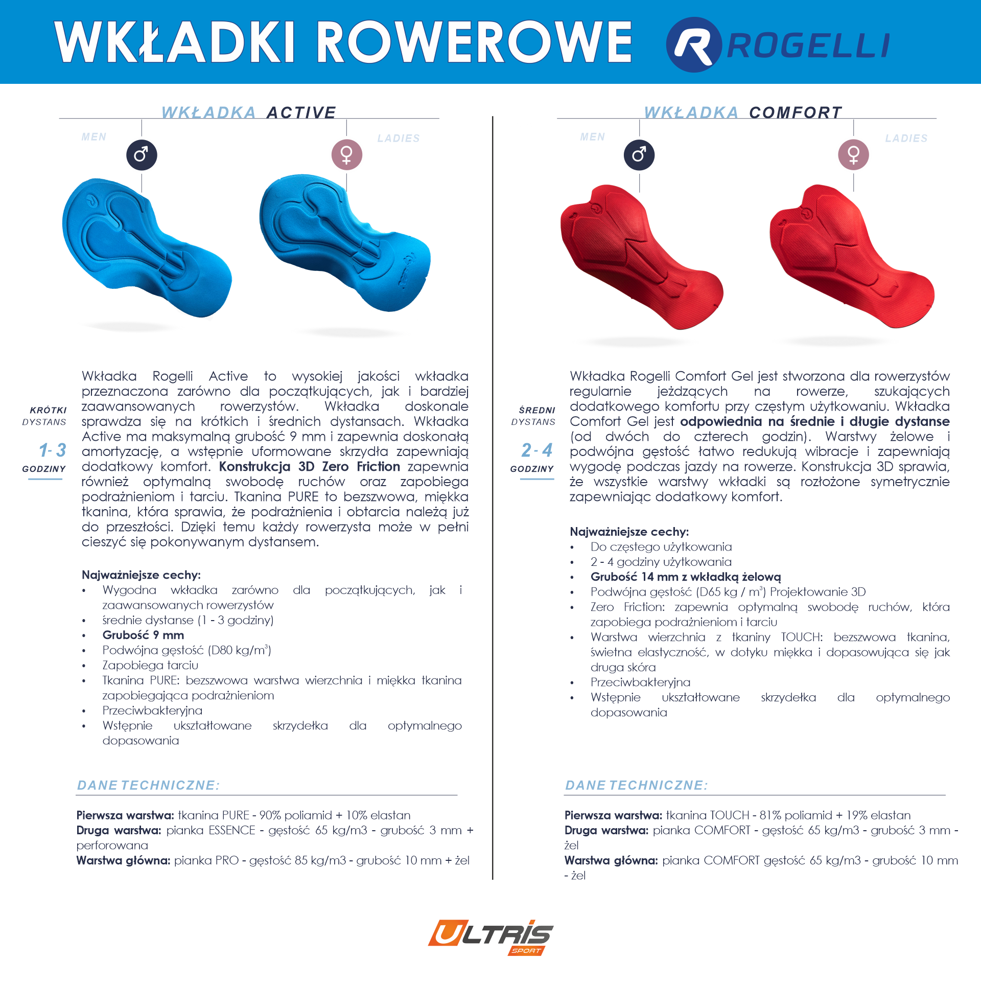 2. Grubość wkładki - Pamiętajmy, że bielizna z wkładką w połączeniu ze spodniami z wkładką nie zwiększa komfortu jazdy! Wręcz przeciwnie - wybierz albo spodnie albo bieliznę. Wypełnienie wkładek Rogelli zaczyna się od 9 mm.
