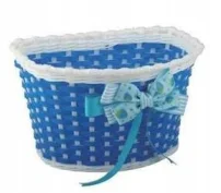 Koszyk rowerowy plastik przód biało niebieski kok.