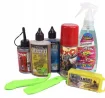 Zestaw do obsługi i konserwacji rowerów. Starter w swoim składzie zawiera środek do czyszczenia roweru dirt off 200 ml z wygodnym atomizerem, exol 100 ml do smarowania i konserwacji, oleje do łańcucha: na mokre i suche warunki, smar montażowy, zestaw naprawczy do dętek oraz łyżki do zdejmowania opon.