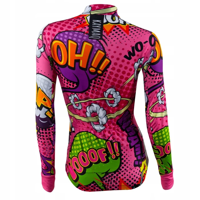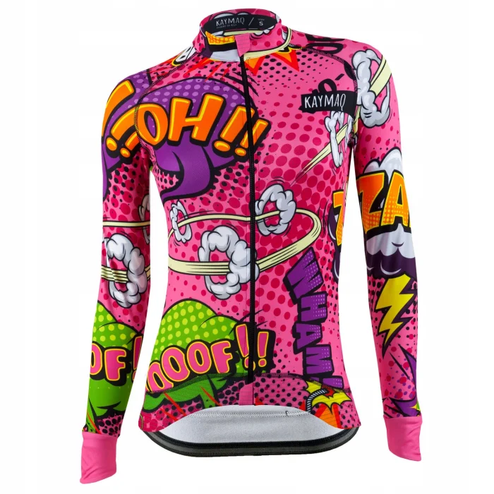 Damska bluza rowerowa KAYMAQ na chłodniejsze dni o doskonałym, anatomicznym i dopasowanym kroju . Elastyczny materiał 100% poliester, lekko ocieplony od wewnątrz, zapewnia odpowiednią termikę, szybko schnie, a dzięki swojej elastyczności zapewnia pełną swobodę ruchu.