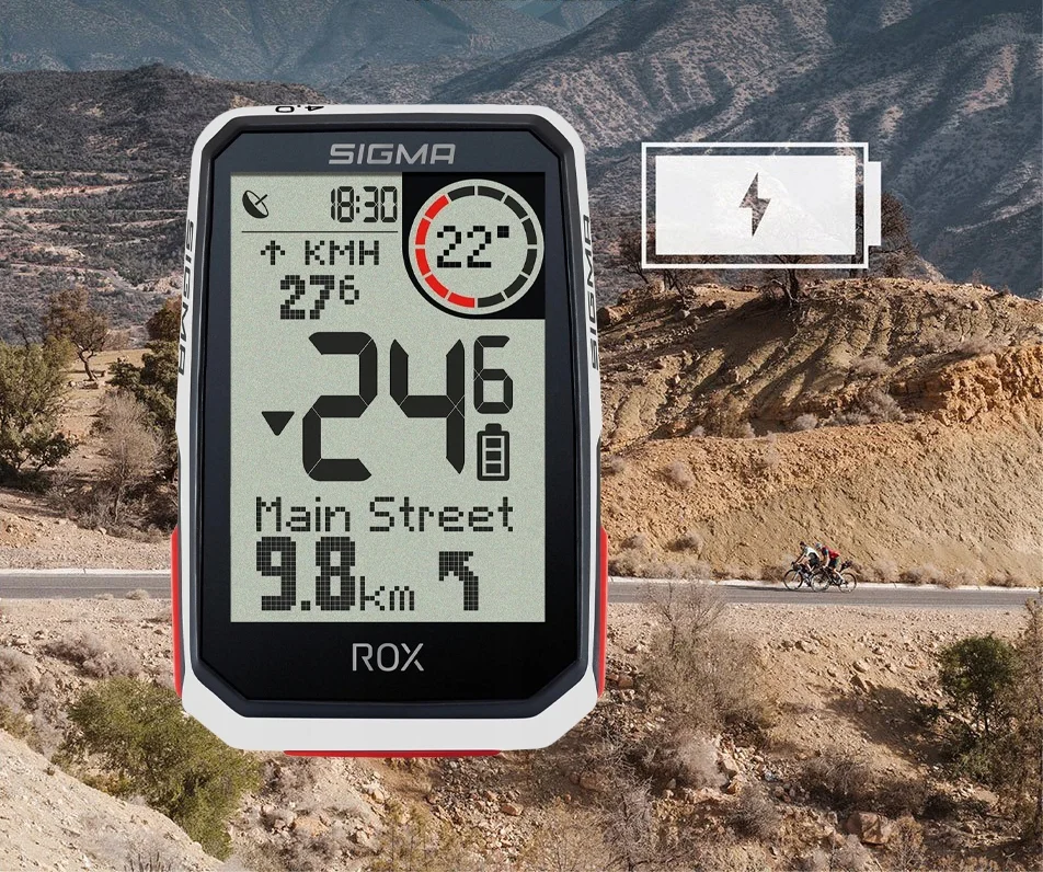 Podczas nawigacji na wyświetlaczu ROX 4.0 ENDURANCE pokazywana jest trasa i jej wskazówki zakręt po zakręcie. Strzałka i sygnał dźwiękowy wskazują następny skręt. Urządzenie ROX 4.0 ENDURANCE wyświetla również nazwę ulicy a jeśli przypadkiem zboczysz z sugerowanej trasy, ROX szybko zaplanuje nową trasę do miejsca docelowego z odpowiednio zaktualizowanym profilem wysokości w interakcji z aplikacją SIGMA RIDE.