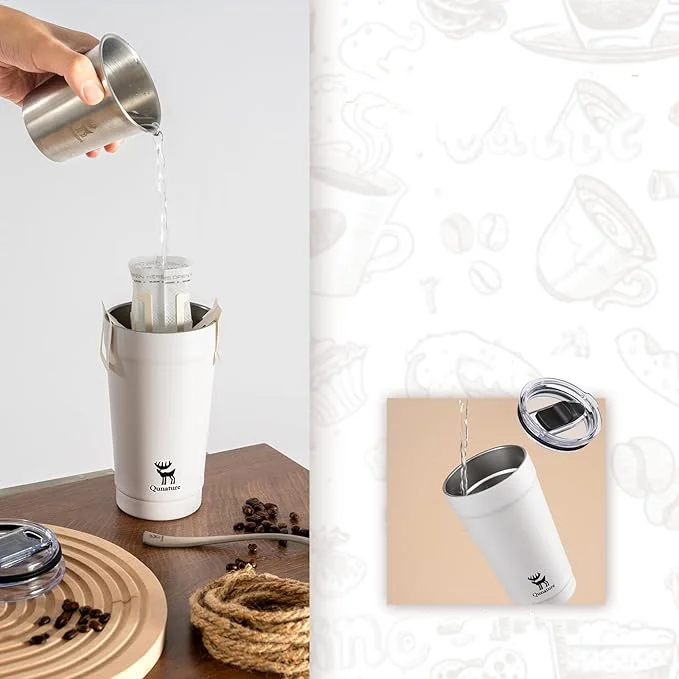 Szczelny i przenośny kubek do kawy: bezpieczne zamknięcie zapobiega rozlaniu. Zabierz go wszędzie – idealnie nadaje się do przygotowywania kawy w domu, dla osób dojeżdżających do pracy lub dla entuzjastów aktywności na świeżym powietrzu, którzy potrzebują niezawodnego kubka podróżnego