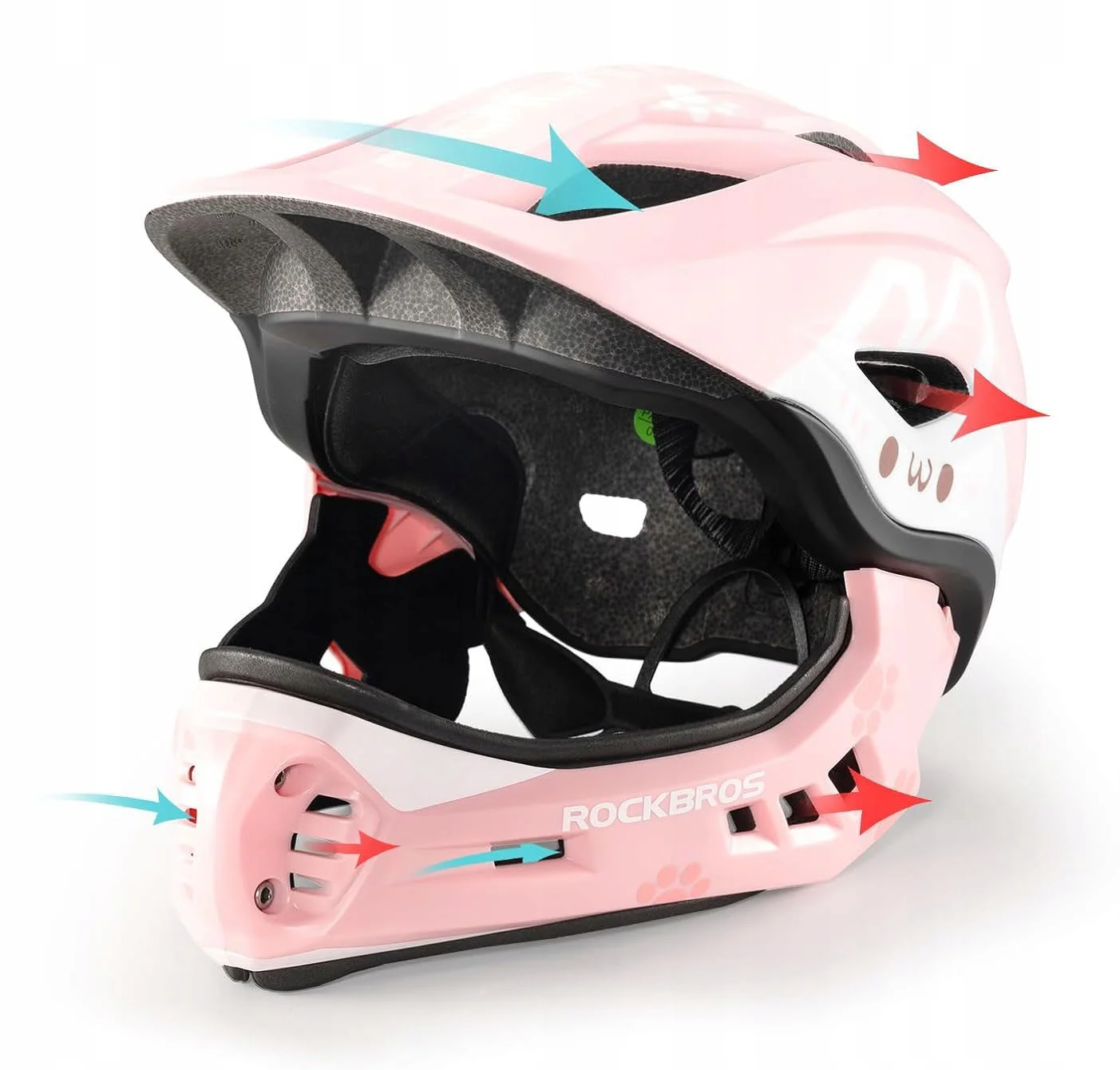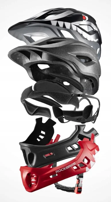 Dzięki zdejmowanej osłonie podbródka kask dziecięcy może być używany jako pełny kask i półkask. Zapewnia pełna ochronę podbródka dziecka.