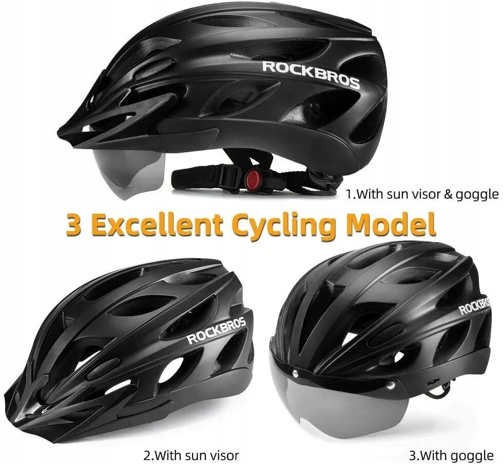 Dzięki zdejmowanemu daszkowi i goglom kask rowerowy może być odpowiedni w wielu sytuacjach pogodowych, takich jak gorący dzień, wietrzny dzień lub wietrzna noc.
