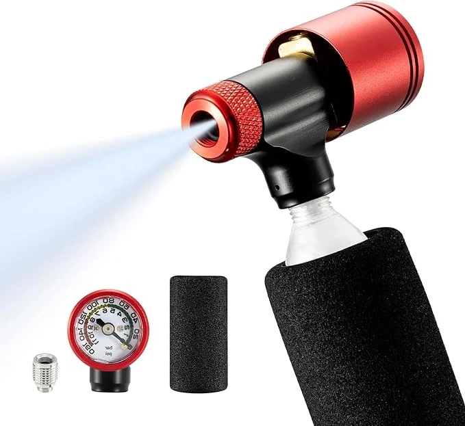 W przeciwieństwie do innych standardowych nabojów CO₂ dostępnych na rynku, napełniacz do opon rowerowych ROCKBROS jest wyposażony w manometr 160 PSI, który pozwala w prosty i intuicyjny sposób odczytać ciśnienie w oponie. Dzięki temu możesz w każdej chwili kontrolować poziom ciśnienia i uniknąć nadmiernego napompowania. To naprawdę bezpieczne rozwiązanie dla rowerzystów.