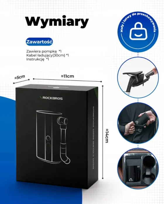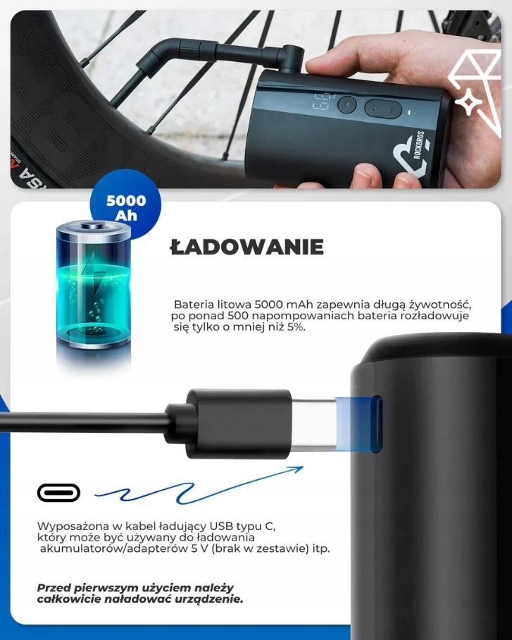 Rockbros pompka rowerowa elektryczna 150PSI czarna