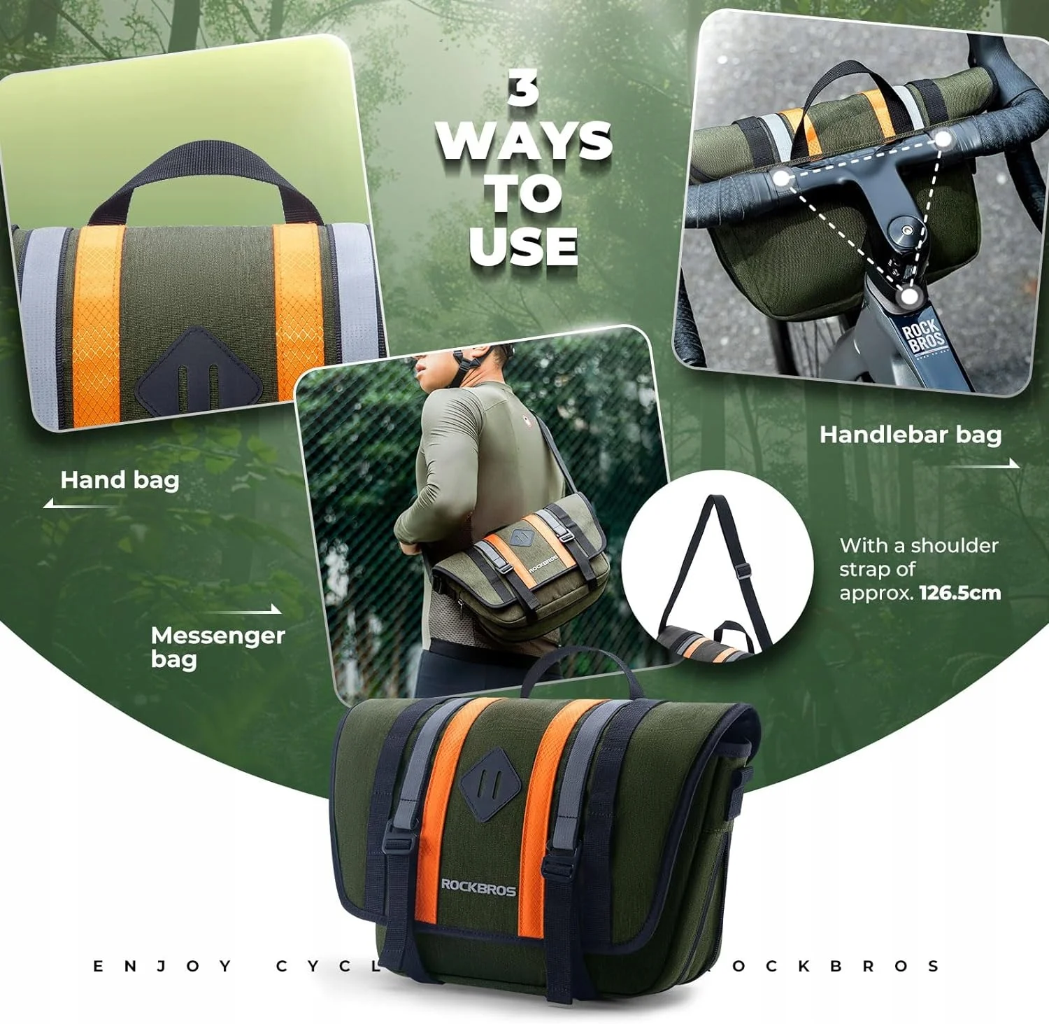 Przednia torba pasuje do większości modeli rowerów. W zestawie znajduje się pasek na ramię o długości 126,5 cm. Po zejściu z roweru torbę można zabrać ze sobą. To nie tylko torba rowerowa, ale także torba na ramię.