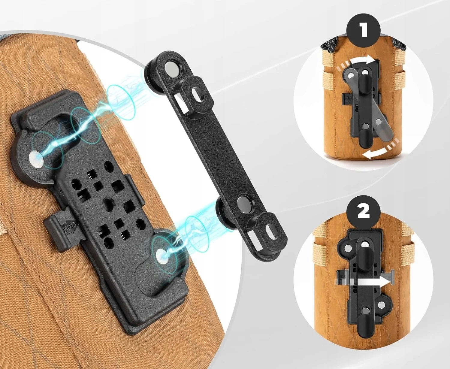 Dzięki systemowi mocowania torby do roweru za pomocą uchwytu magnetycznego, można ją zdjąć po lekkim przekręceniu.