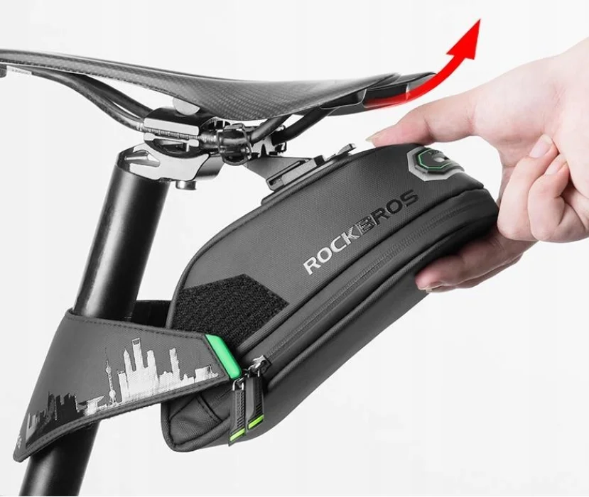 Sakwa rowerowa marki Rockbros jest torbą mocowaną pod siodłem. Jest tak zaprojektowana, aby w uproszczony sposób przewozić sprzęt bez potrzeby montażu tylnego bagażnika. Wykonana z odpornych i trwałych materiałów. Jest lekka, wodoodporna oraz łatwa w montażu. Ulepszony system montażu w połączeniu z paskami zaciskowymi zmniejsza efekt wahadła związany z dużym ładunkiem i zapewnia komfortową jazdę przez wiele kilometrów. Łatwy dostęp do wodoodpornego wnętrza pozwala, aby zawartość pozostała całkowicie sucha.