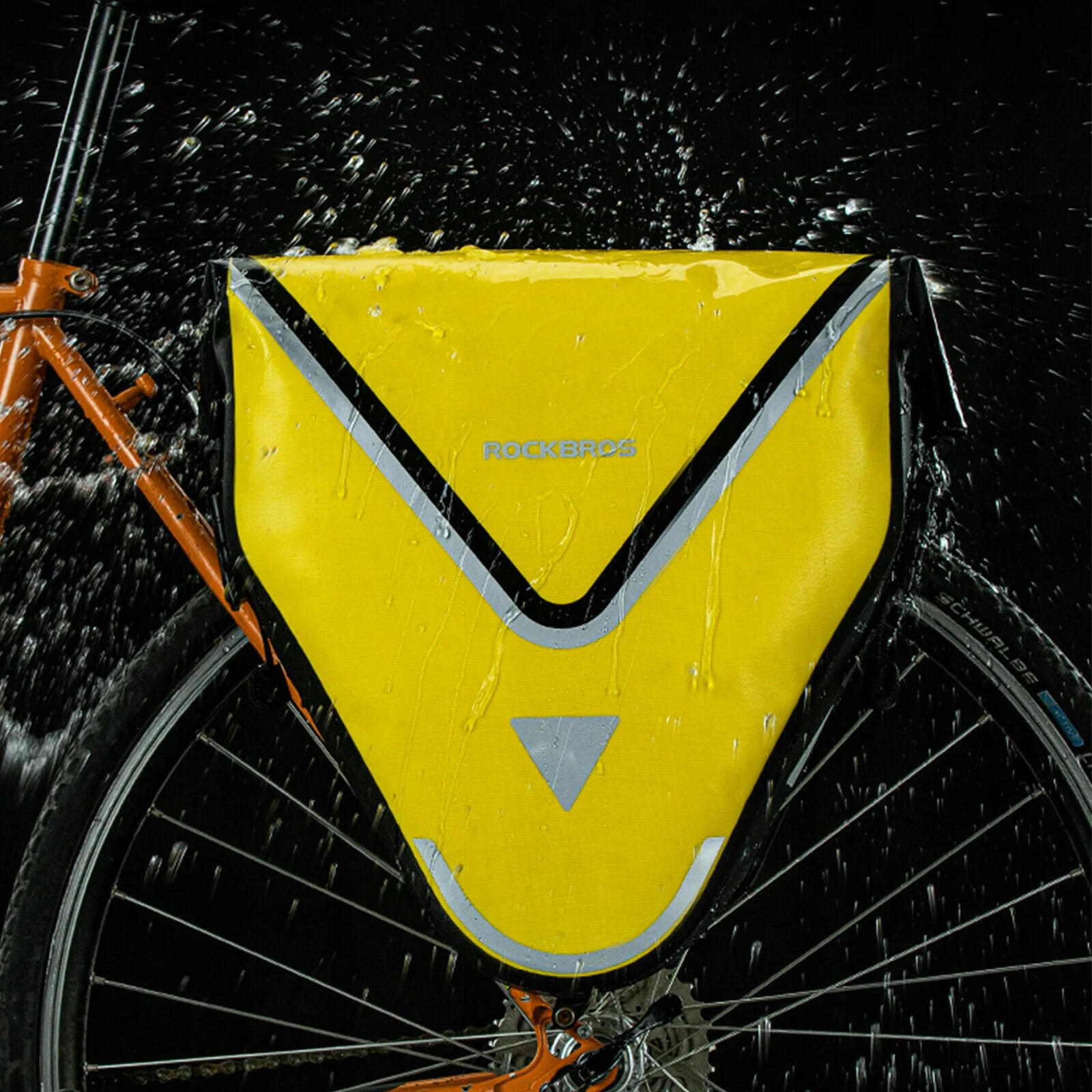 Tylna sakwa ROCKBROS wykonana z nylonu 840D i 0,1 mm TPU jest całkowicie wodoodporna, trwała i odporna na rozdarcia.