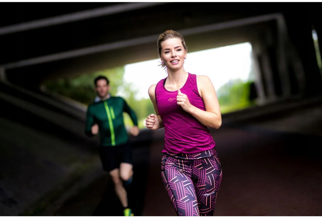 Modelka prezentuje na sobie zestaw ubrań marki Rogelli z kolekcji AURA: