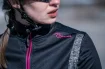 Damska kurtka softshellowa Rogelli BLISS z oddychającym panelem tylnym, czarno-szara z różowymi elementami odblaskowymi