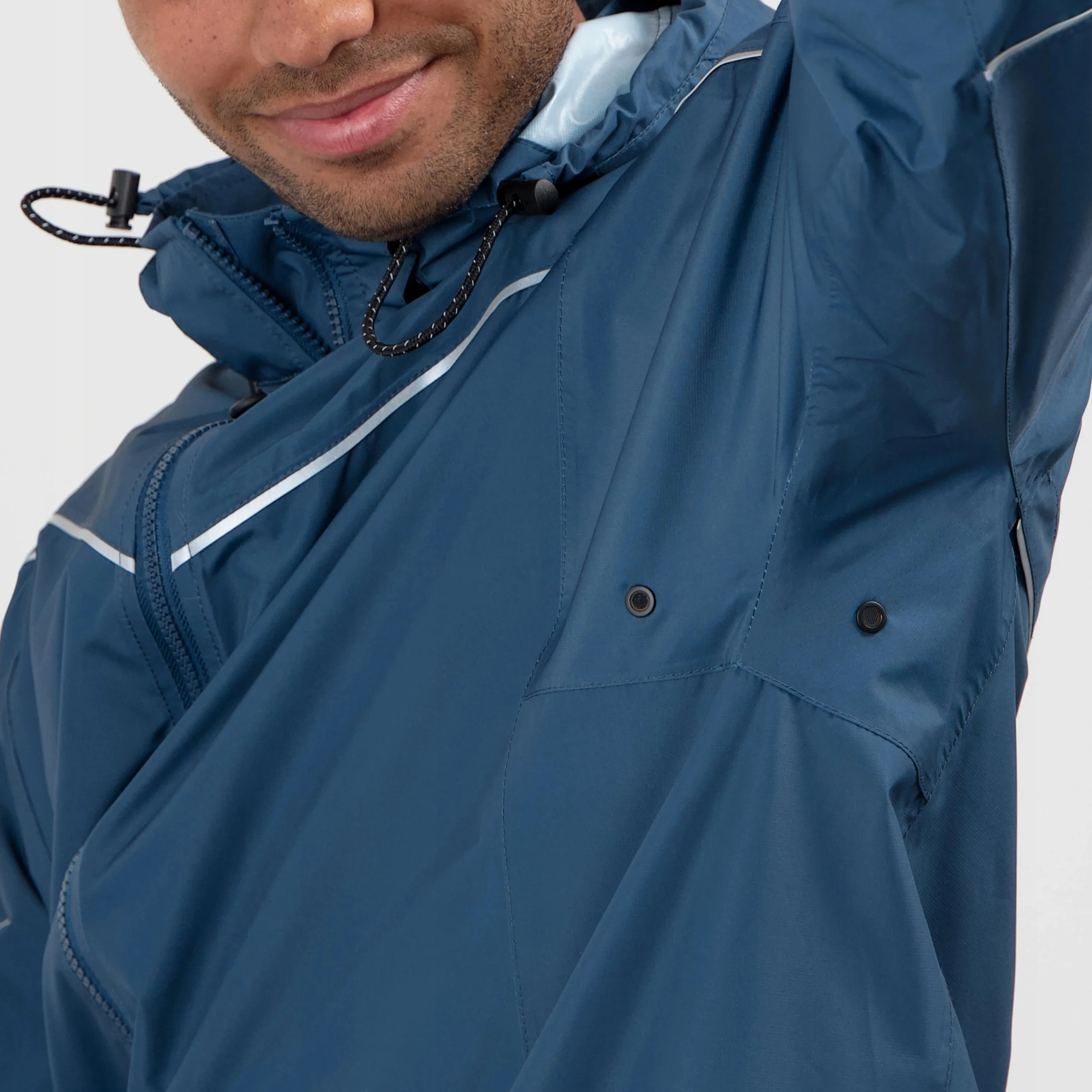 Wykonana z materiału Eco Aqualite 8000, materiału wodoodpornego z recyklingu, ta kurtka przeciwdeszczowa zapewnia maksymalną ochronę przed deszczem. Klejone szwy zapewniają dodatkową wodoodporność, dzięki czemu pozostajesz suchy nawet podczas najcięższych opadów deszczu.